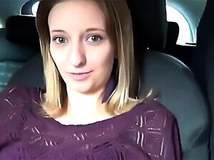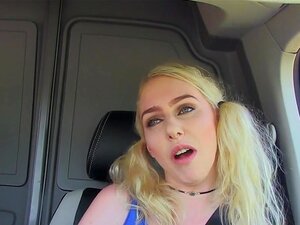 Estranho com cam bangs fofa caroneira em público, Estranho com câmera ajuda loira peituda caroneira e a dirige, depois agarra seus peitos antes de chupar e foder ele ao ar livre ao lado de sua van em lugar público tranquilo