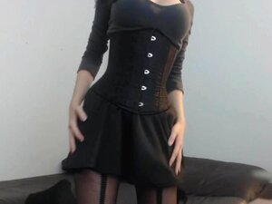 Sedução Jerkoff, Kayden te seduz em seu vestido de coquetel preto e meia-calça preta de virilha transparente enquanto senta e abre bem as pernas. Você está fodendo seu pau com a mão? Até a mangueira, ela puxa forte o cós enquanto sua buceta fica molhad