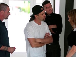 Quatro vadias anais são fodidas em uma orgia pública. Em uma mestra e mestre subterrâneo, apresentando seus quatro escravos liderados por Roxanne Rae e depois fodendo-os analmente interracialmente para o público