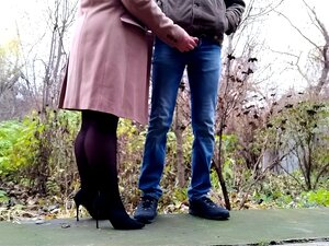 Vizinha mais velha caminha com a bunda despida ao ar livre