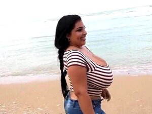 Dominicana Isabela mostrando os peitões na rua e na praia